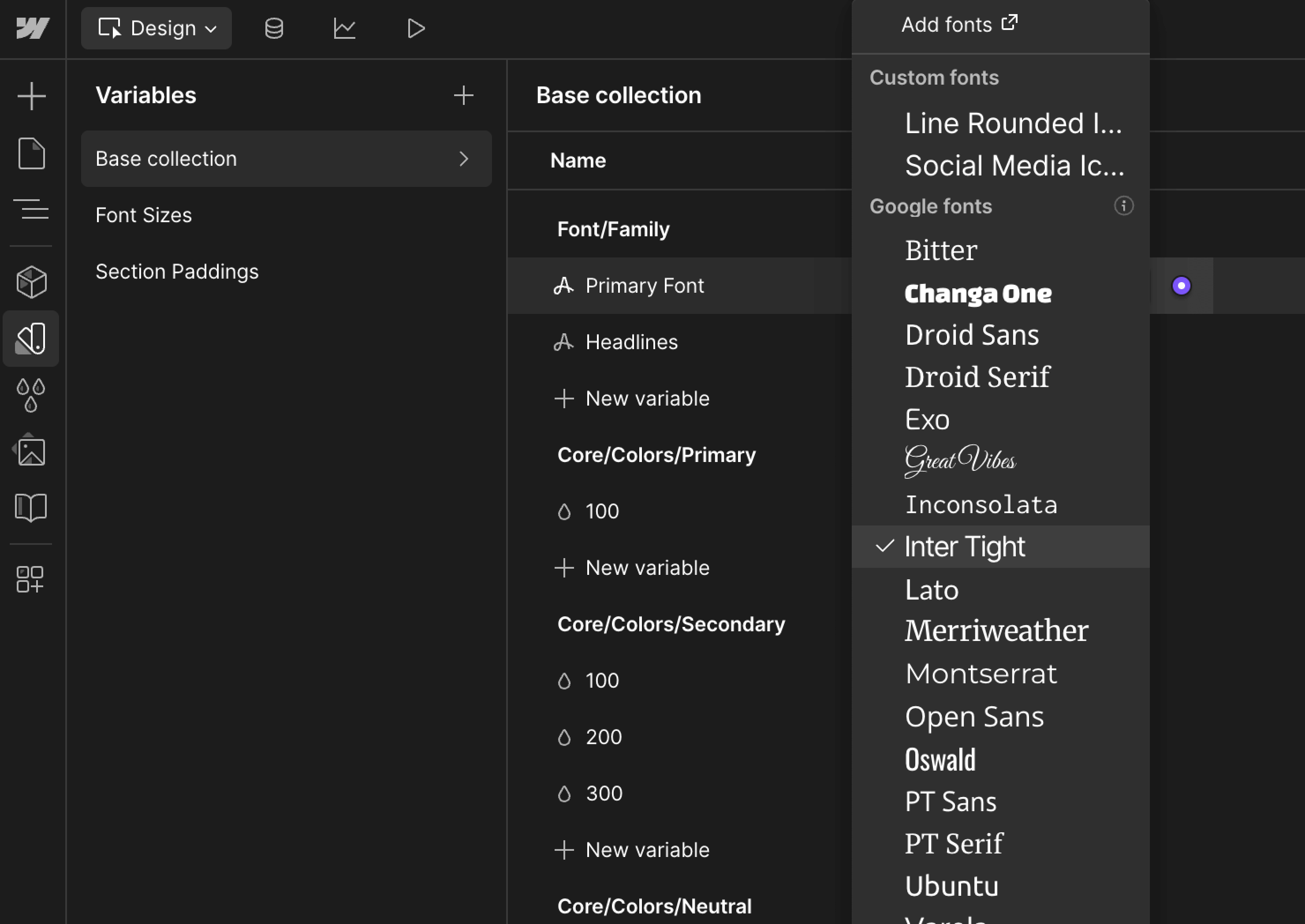 In order to do this, you just need to go to the Variables tab in the left sidebar, then select the Main Font variable, and change the font to any font for your business brand.